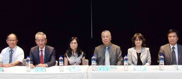 台北市海運承攬公會昨(二十五)日舉辦「VGM載重貨櫃總重驗證」座談會,理事長陳木枝(圖右三,陳維強攝)、召集人林毓桂(左三)、副召集人黃石(左二)共同主持,韓進海運船代業務總監楊永華(右一)、陽明海運台營部資深經理陳榮忠(左一)、交通部航港局科長廖君穎(右二)應邀說明船公司VGM作法及「我國實施載重貨櫃總重驗證指導原則」部份修正規定。